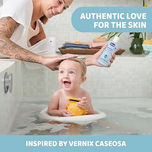 شامپو و ژل شستشوی بدن و موی کودک Chicco Natural Sensation، ترکیبی ملایم و طبیعی برای پاکسازی روزانه پوست و موی حساس نوزاد است. این محصول با آلوئهورا و عصاره بابونه غنی شده تا پوست را مرطوب و موها را نرم و لطیف کند. فرمول بدون اشک (No Tears) و بدون پارابن، صابون و رنگ مصنوعی، باعث میشود برای استفاده از روز اول تولد کاملاً ایمن باشد.