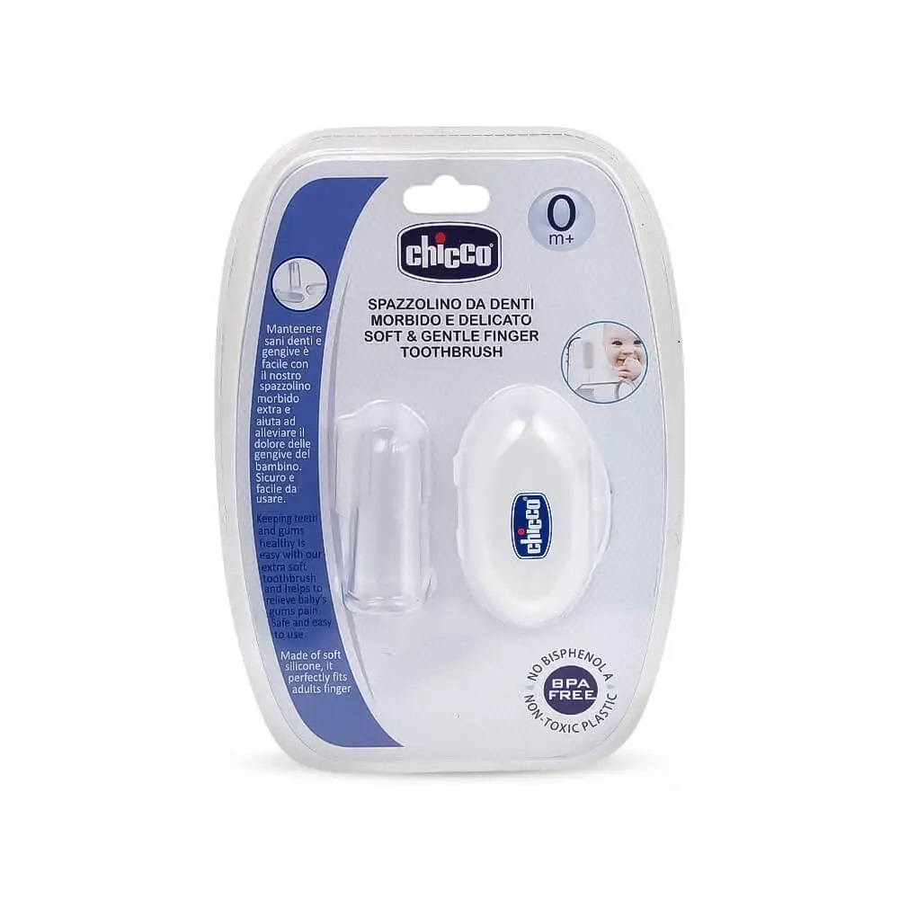 مسواک انگشتی چیکو (Chicco Finger Toothbrush) وسیله‌ای کاربردی و ایمن برای مراقبت از بهداشت دهان نوزاد است. این مسواک از سیلیکون نرم و ضد حساسیت ساخته شده تا بدون آسیب به لثه حساس کودک، دندان‌ها و دهان او را تمیز کند. با استفاده از این مسواک، می‌توانید از همان ماه‌های ابتدایی زندگی نوزاد، عادت به مسواک زدن را در او شکل دهید. همچنین زمانی که دندانها شروع به ریشه زدن میکنند با استفاده از این مسواک میتوان از ژل بی‌حسی برای تسکین درد و خارش نوزاد جلوگیری کرد و بعد از دندان درآوردن نیز وقتی از قطره‌ی آهن استفاده میشود برای پاک کردن زردی قطره میتوان از این مسواک استفاده کرد. طراحی انگشتی آن کنترل کامل والدین را فراهم می‌کند و شست‌وشوی دهان کودک را به کاری ساده و لذت‌بخش تبدیل می‌نماید.