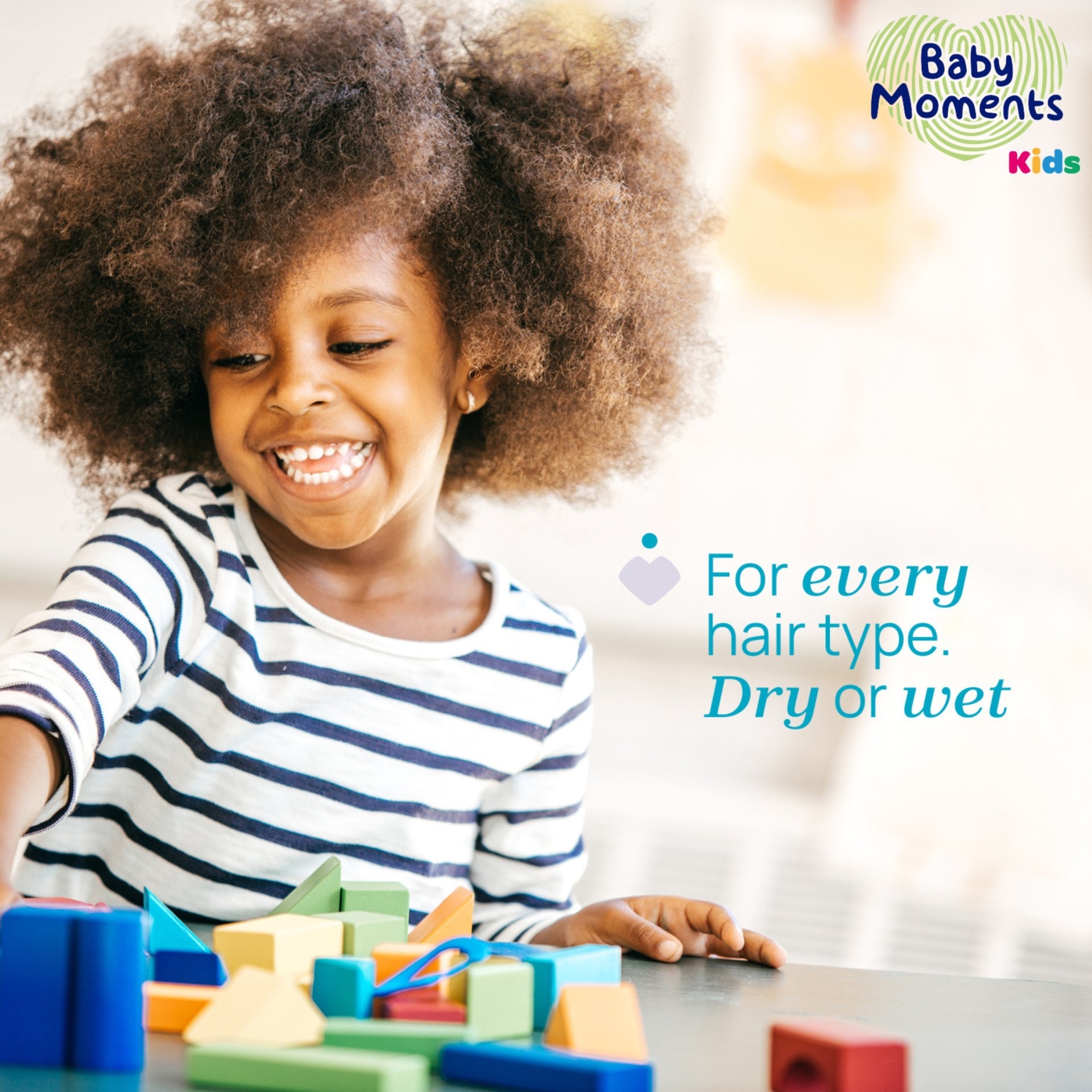 مقدار کافی از اسپری را روی موی خشک یا مرطوب کودک اسپری کرده و سپس با شانه‌ی نرم، موها را به‌آرامی برس بکشید.