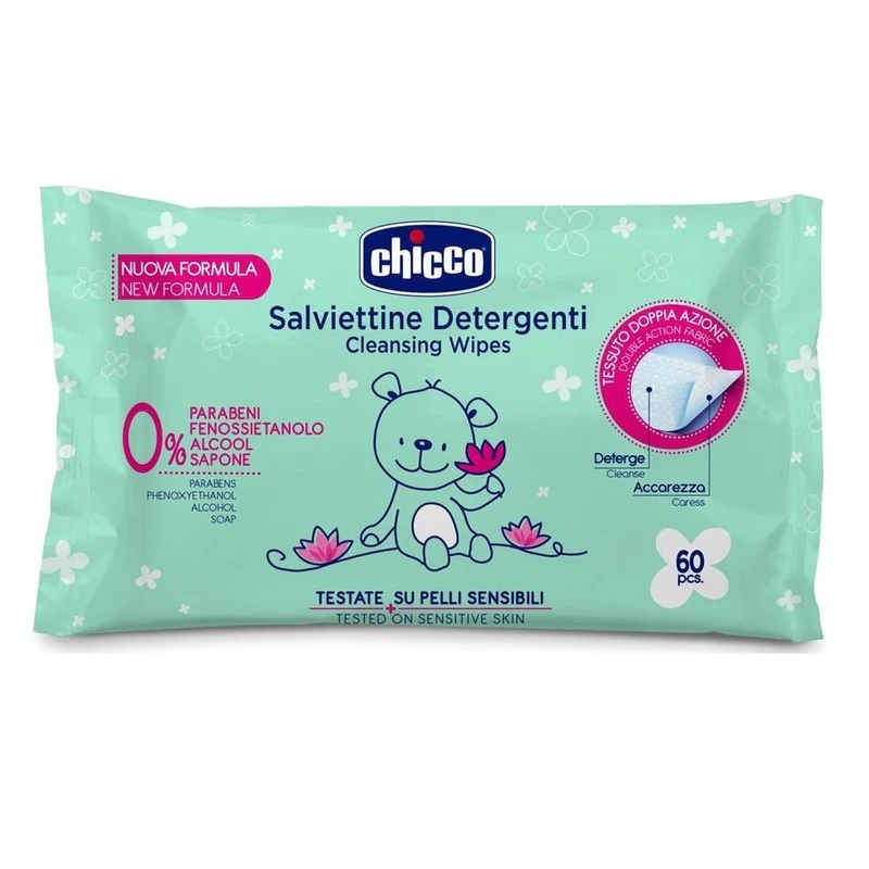 دستمال مرطوب ۶۰ عددی چیکو (Chicco) یکی از بهداشتی‌ترین و ملایم‌ترین محصولات مخصوص پاکسازی پوست نوزاد است. این دستمال‌ها با فرمولی غنی از عصاره‌های طبیعی و آب خالص (۹۷٪ آب خالص) ساخته شده‌اند تا پوست حساس کودک را بدون تحریک یا خشکی تمیز کنند. ترکیبات ویژه با عصاره‌ی گیاهان مدیترانه‌ای و عطر ملایم سیسیلیا باعث احساس تازگی و نرمی پوست می‌شود. دستمال‌ها کاملاً فاقد الکل، پارابن و مواد حساسیت‌زا هستند و به دلیل بافت نرم و مرطوب، برای پاک کردن دست، صورت و ناحیه پوشک نوزاد مناسب‌اند. بسته‌بندی ۶۰ عددی آن طوری طراحی شده که رطوبت دستمال‌ها تا آخرین استفاده حفظ می‌شود و برای استفاده در خانه یا خارج از منزل بسیار کاربردی است.