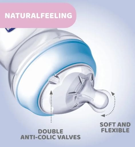 شیشه شیر چیکو مدل نچرال فیلینگ (Natural Feeling) با ظرفیت 150 میلی‌لیتر، بهترین انتخاب برای تغذیه نوزادان از بدو تولد است. طراحی خاص سر سیلیکونی نرم و زاویه‌دار آن، تجربه‌ای طبیعی و مشابه سینه مادر را ایجاد می‌کند تا نوزاد به‌راحتی تغذیه شود و از سردرگمی بین سینه و شیشه جلوگیری گردد. این شیشه شیر دارای سیستم ضدکولیک (Anti-Colic Valve) است که از ورود هوای اضافی به معده نوزاد جلوگیری کرده و احتمال نفخ و دل‌درد را کاهش می‌دهد. مواد اولیه آن فاقد BPA بوده و از پلاستیک باکیفیت و ایمن برای نوزاد ساخته شده است. طراحی ارگونومیک بطری باعث می‌شود والدین بتوانند آن را به‌راحتی در دست بگیرند و کنترل مناسبی هنگام تغذیه داشته باشند.